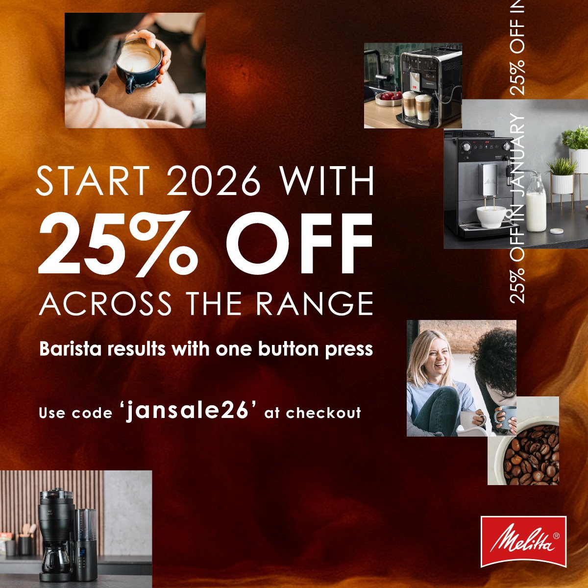 Start the year with better coffee for less. The Melitta® January Sale is here — enjoy 25% off across our entire range when you use code jansale26 at checkout. From bean-to-cup coffee machines to premium coffee beans and essential accessories, it’s the perfect time to upgrade your coffee setup.